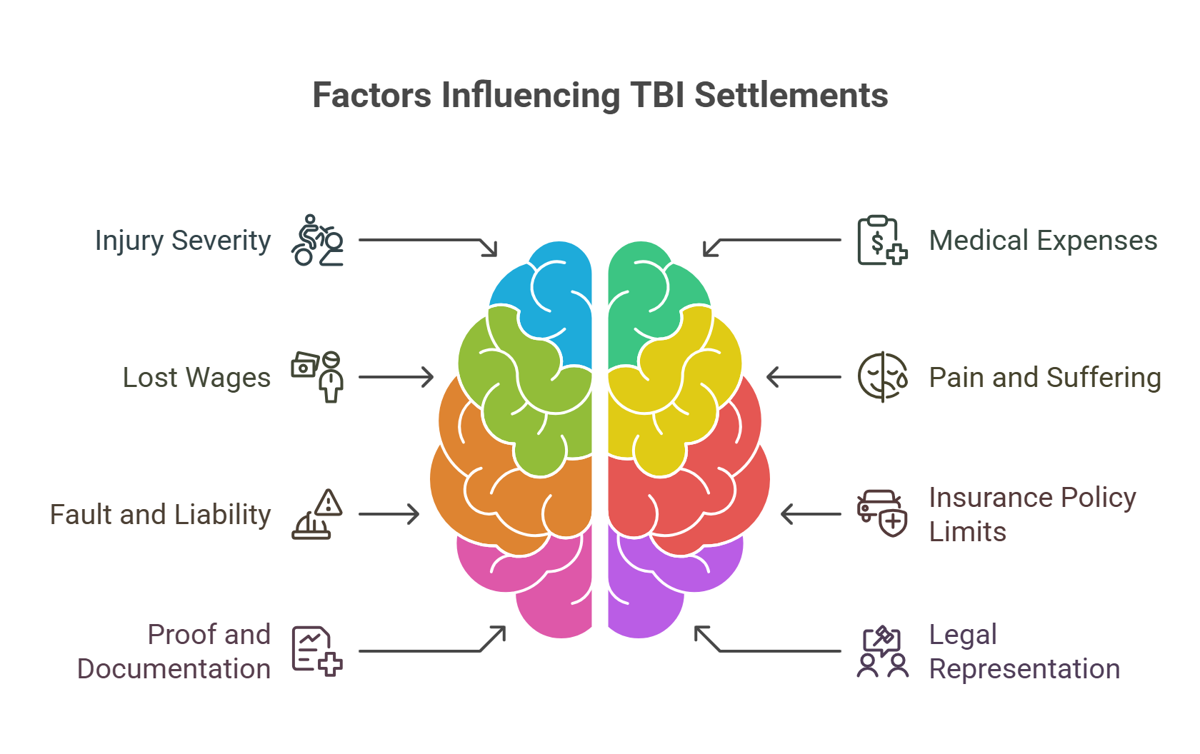 Several key factors influence the settlement value of a TBI claim. These factors include the severity of the injury and its long-term impact on daily life. Other important considerations are medical costs, lost income, liability, and the strength of the evidence presented.